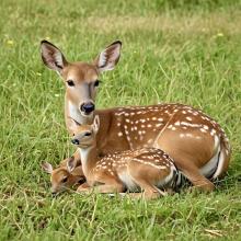 The doe watched cautiously from the edge of the forest. - Con nai cái đứng cẩn thận nhìn từ mép rừng.