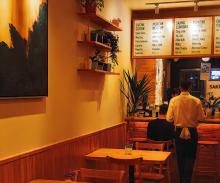 Không nhầm với café (quán cà phê, chủ yếu uống nước) hoặc diner/fast food (quán ăn nhanh).